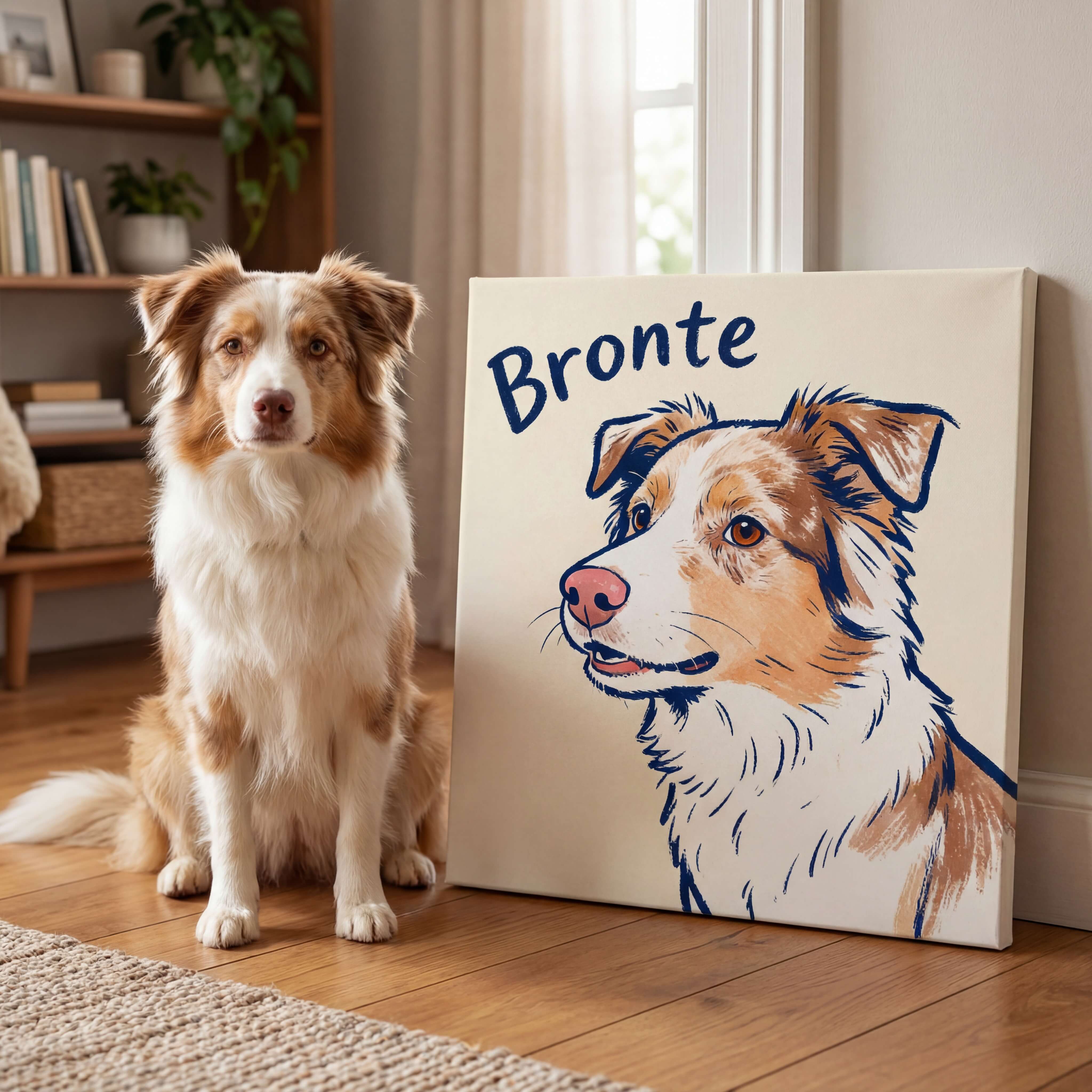 Choose a size and style, then upload a photo of your dog or cat (or any pet). Any pet, any breed—we work from your best shot.