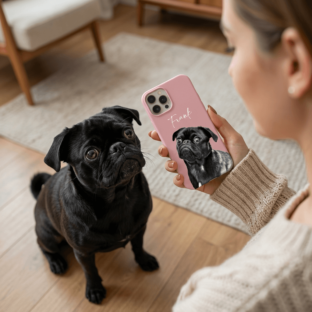 Carry your pet everywhere you go. Upload a clear photo of your pet and we'll create a custom phone case with their portrait — available for all major iPhone and Samsung models.