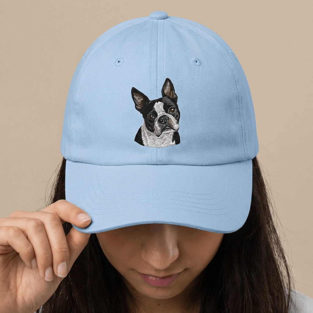 Wear your love proudly. Our premium dad hats are embroidered with a hand-digitized portrait of your pet for a clean, durable finish that won't fade or peel. One size fits most.