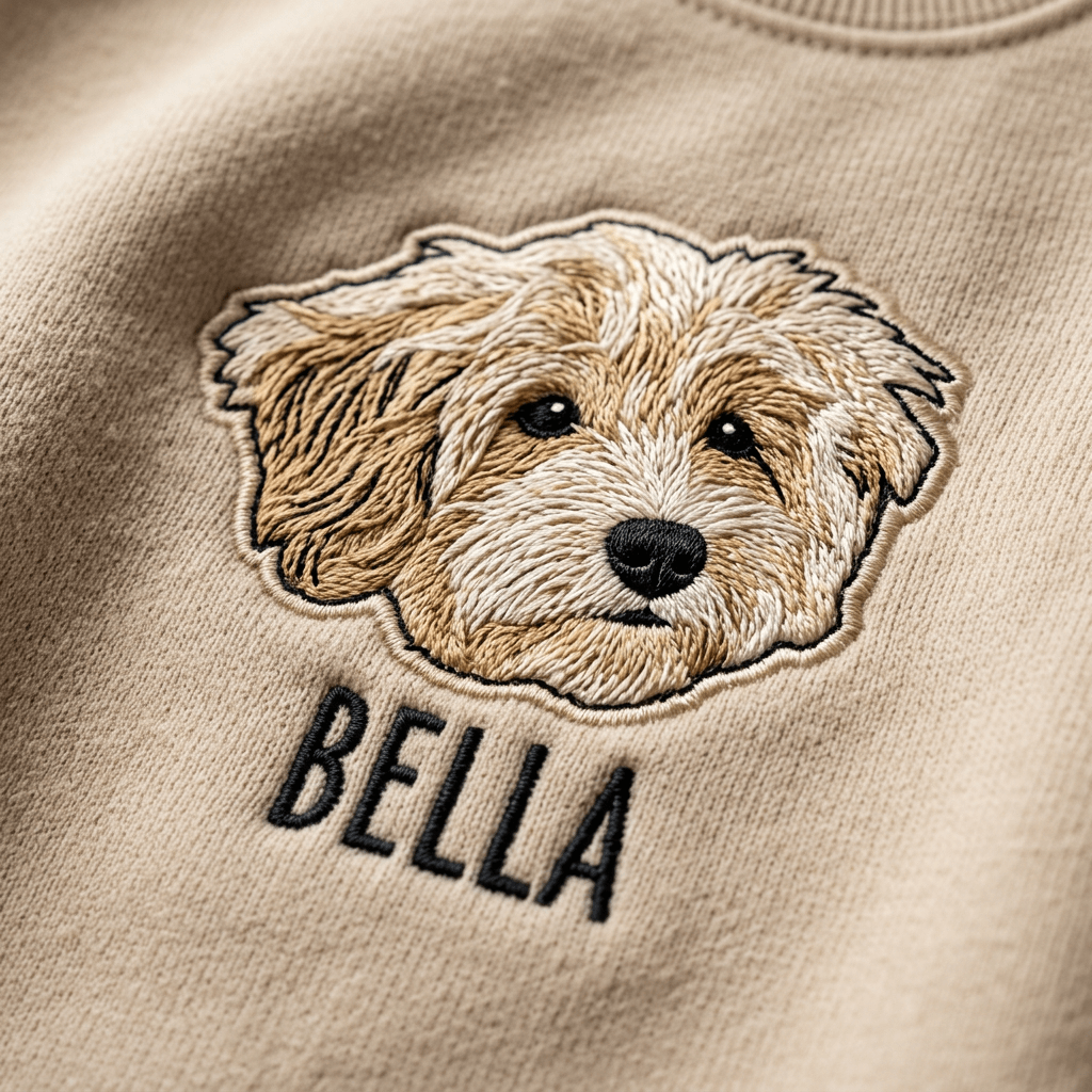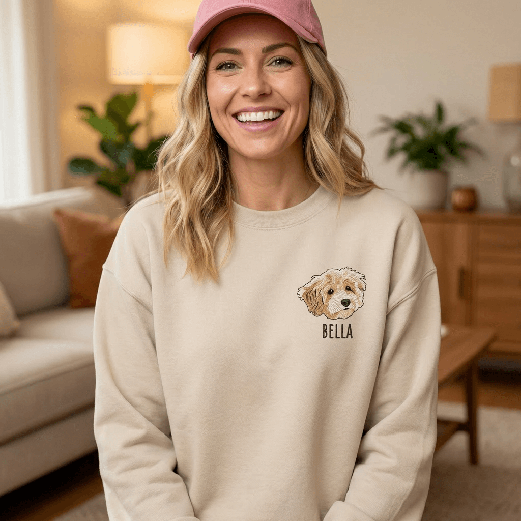 The ultimate cozy tribute to your pet. A hand-digitized embroidery of your pet's portrait is stitched directly onto this ultra-soft sweatshirt — the perfect gift for any pet parent.